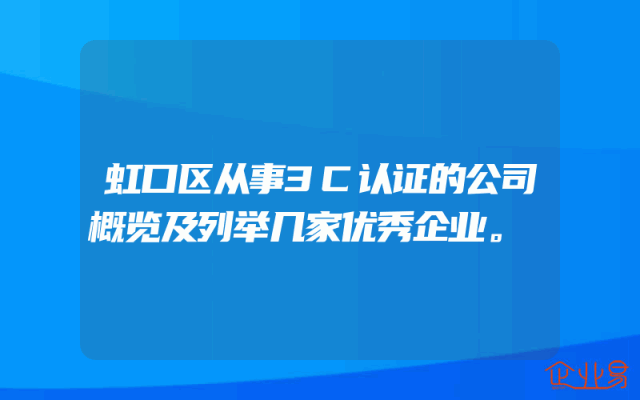 - 虹口区从事3C认证的公司概览及列举几家优秀企业。