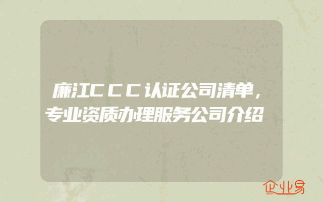 - 廉江CCC认证公司清单,专业资质办理服务公司介绍