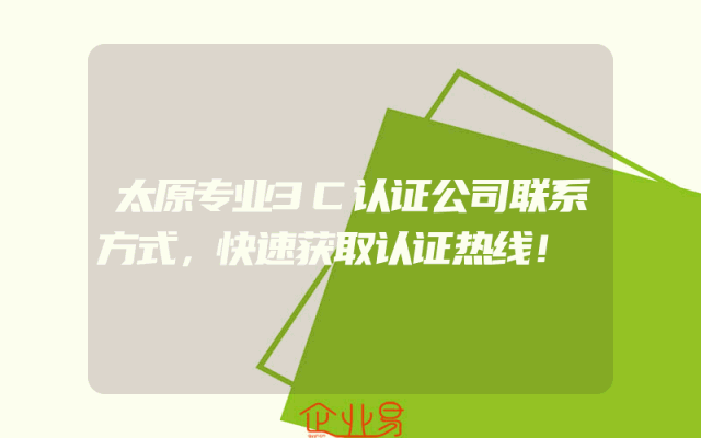 - 太原专业3C认证公司联系方式,快速获取认证热线!