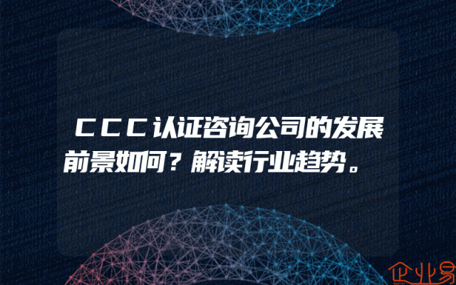 - CCC认证咨询公司的发展前景如何?解读行业趋势。
