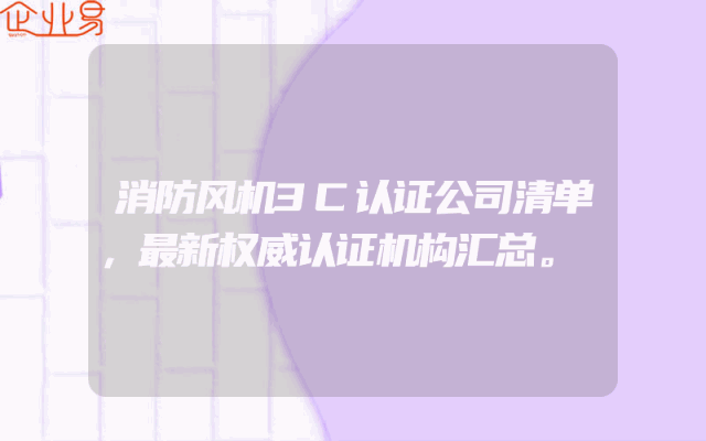 - 消防风机3C认证公司清单,最新权威认证机构汇总。