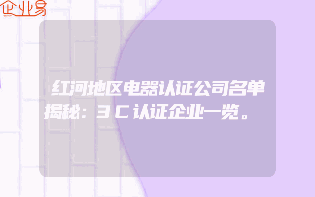 - 红河地区电器认证公司名单揭秘:3C认证企业一览。