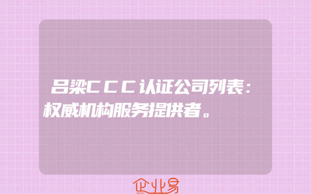 - 吕梁CCC认证公司列表:权威机构服务提供者。