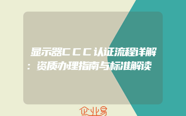 - 显示器CCC认证流程详解:资质办理指南与标准解读