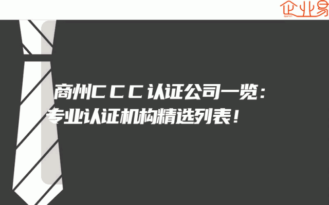 - 商州CCC认证公司一览:专业认证机构精选列表!