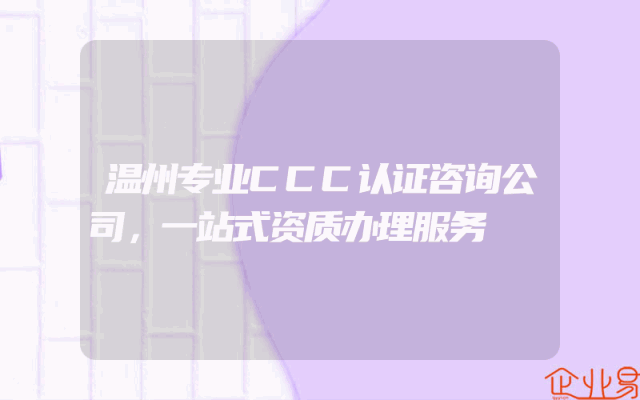 - 温州专业CCC认证咨询公司,一站式资质办理服务
