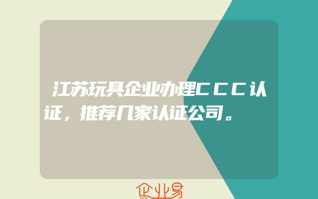 - 江苏玩具企业办理CCC认证,推荐几家认证公司。