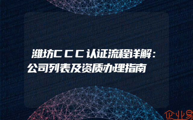 - 潍坊CCC认证流程详解:公司列表及资质办理指南