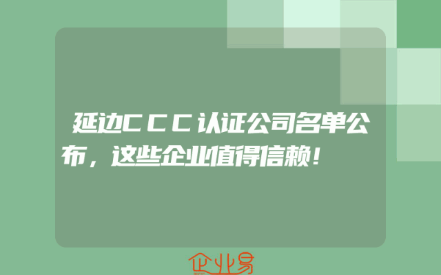 - 延边CCC认证公司名单公布,这些企业值得信赖!