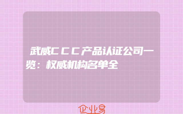 - 武威CCC产品认证公司一览:权威机构名单全