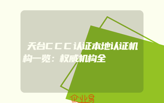 - 天台CCC认证本地认证机构一览:权威机构全