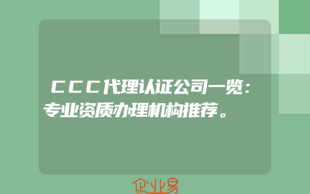 - CCC代理认证公司一览:专业资质办理机构推荐。
