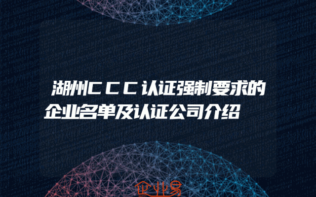 - 湖州CCC认证强制要求的企业名单及认证公司介绍