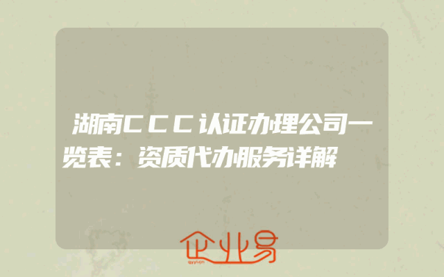 - 湖南CCC认证办理公司一览表:资质代办服务详解