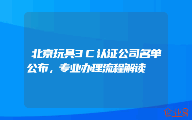 - 北京玩具3C认证公司名单公布,专业办理流程解读