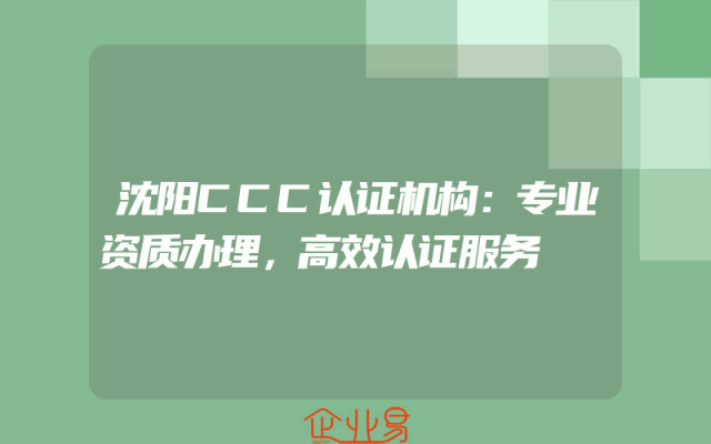 - 沈阳CCC认证机构:专业资质办理,高效认证服务