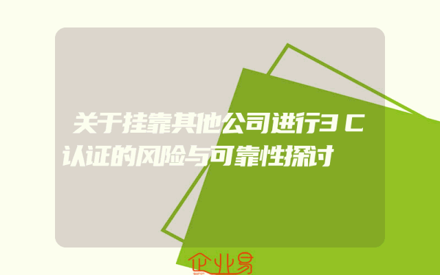 - 关于挂靠其他公司进行3C认证的风险与可靠性探讨