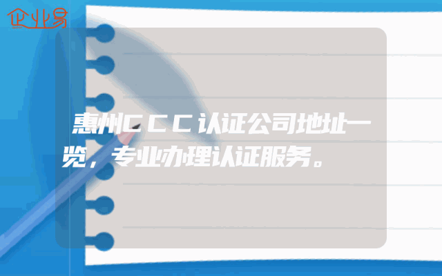 - 惠州CCC认证公司地址一览,专业办理认证服务。