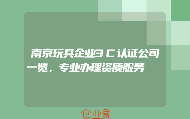- 南京玩具企业3C认证公司一览,专业办理资质服务