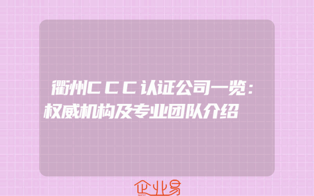 - 衢州CCC认证公司一览:权威机构及专业团队介绍