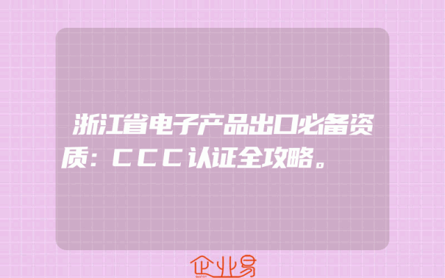 - 浙江省电子产品出口必备资质:CCC认证全攻略。