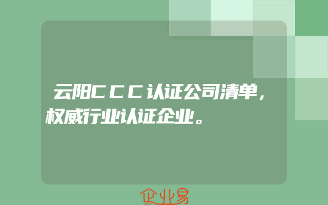 - 云阳CCC认证公司清单,权威行业认证企业。
