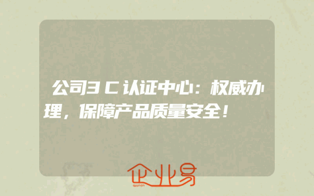 - 公司3C认证中心:权威办理,保障产品质量安全!
