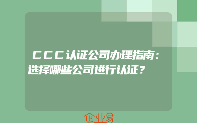 - CCC认证公司办理指南:选择哪些公司进行认证?
