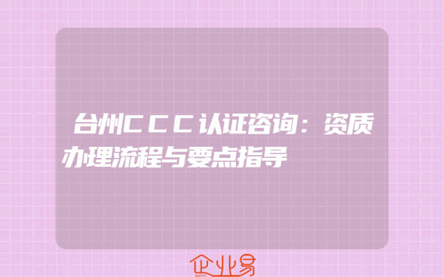- 台州CCC认证咨询:资质办理流程与要点指导