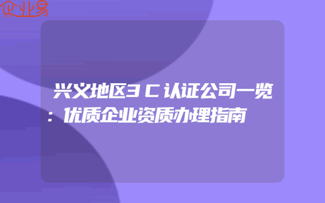 - 兴义地区3C认证公司一览:优质企业资质办理指南