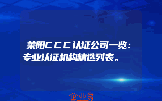 - 莱阳CCC认证公司一览:专业认证机构精选列表。