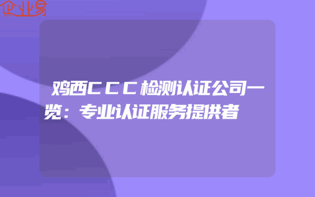 - 鸡西CCC检测认证公司一览:专业认证服务提供者
