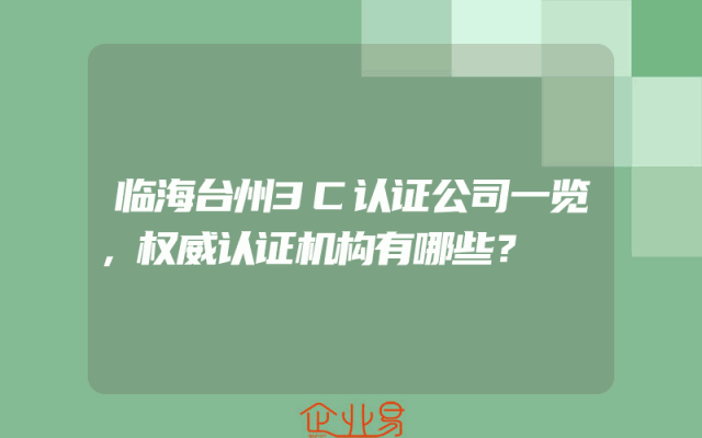 - 临海台州3C认证公司一览,权威认证机构有哪些?