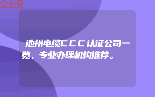 - 池州电缆CCC认证公司一览,专业办理机构推荐。