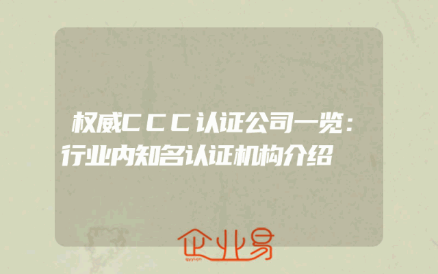 - 权威CCC认证公司一览:行业内知名认证机构介绍