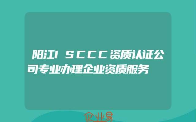 - 阳江ISCCC资质认证公司专业办理企业资质服务
