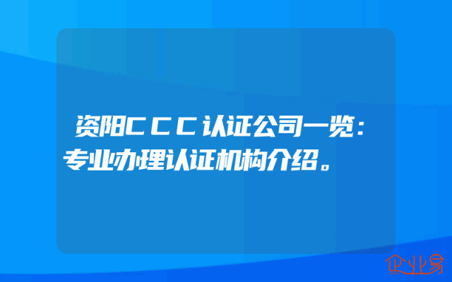 - 资阳CCC认证公司一览:专业办理认证机构介绍。