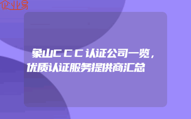 - 象山CCC认证公司一览:优质认证服务提供商汇总一、认证服务市场概述在现代化市场经济环境下,企业面临的竞争压力与日俱增,各项标准与认证作为企业竞争的重要指标之一,成为众多企业追求高质量发展的必要手段。作为行业内专业从事企业服务行业的从