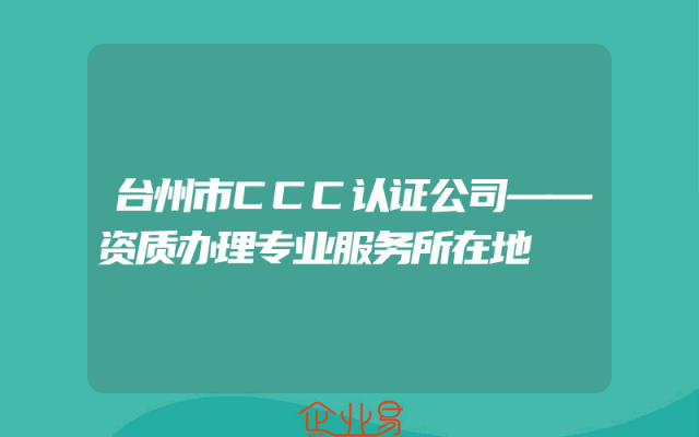 - 台州市CCC认证公司——资质办理专业服务所在地