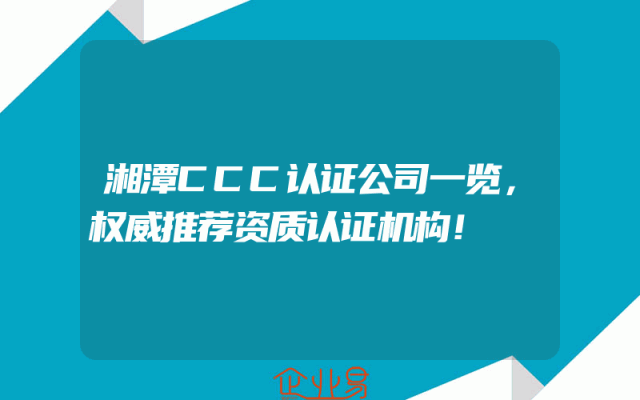 - 湘潭CCC认证公司一览,权威推荐资质认证机构!