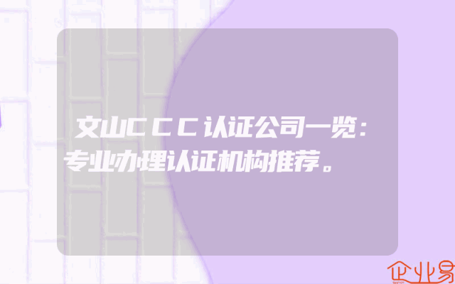- 文山CCC认证公司一览:专业办理认证机构推荐。