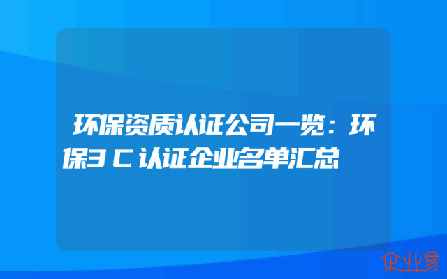 - 环保资质认证公司一览:环保3C认证企业名单汇总