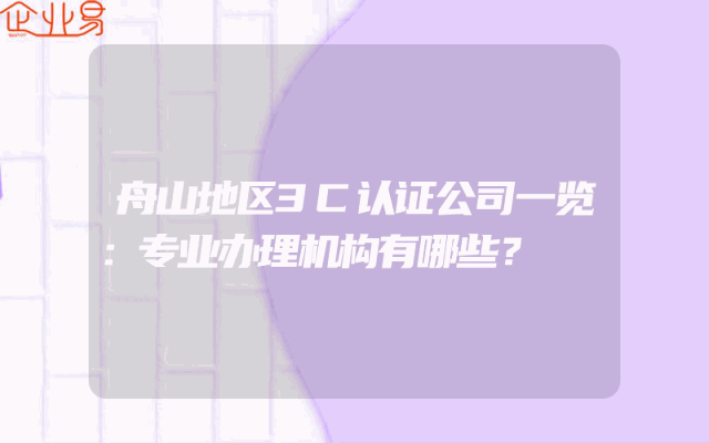 - 舟山地区3C认证公司一览:专业办理机构有哪些?