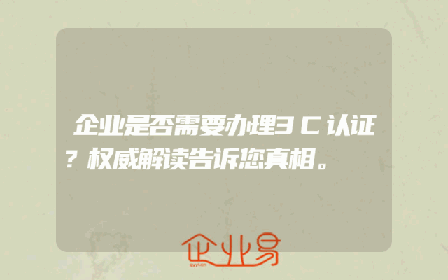 - 企业是否需要办理3C认证?权威解读告诉您真相。