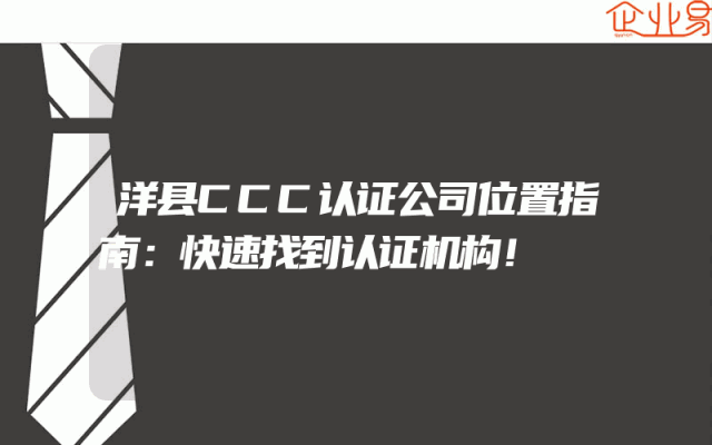- 洋县CCC认证公司位置指南:快速找到认证机构!
