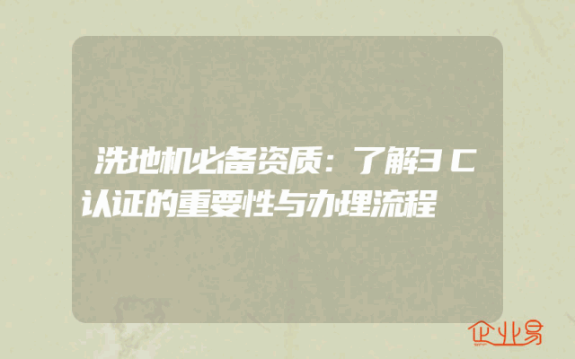 - 洗地机必备资质:了解3C认证的重要性与办理流程