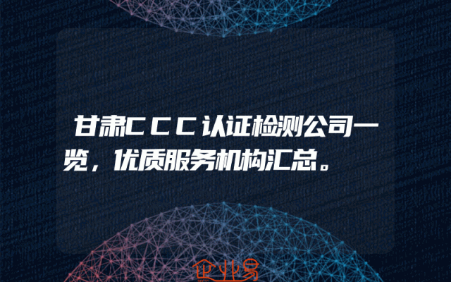 - 甘肃CCC认证检测公司一览,优质服务机构汇总。