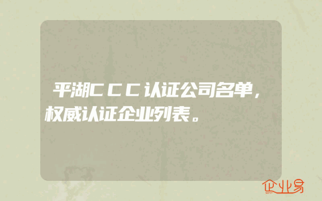 - 平湖CCC认证公司名单,权威认证企业列表。