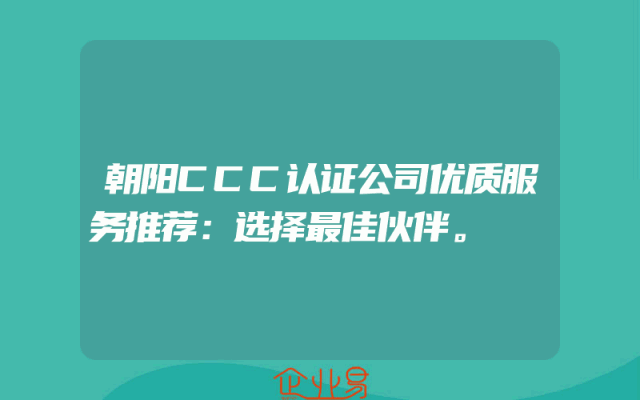 - 朝阳CCC认证公司优质服务推荐:选择最佳伙伴。