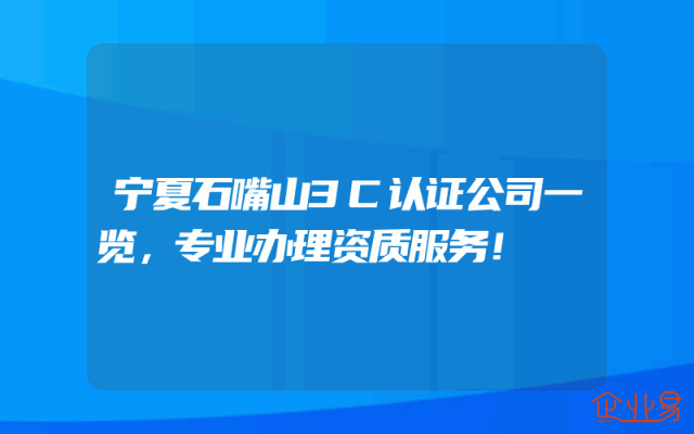 - 宁夏石嘴山3C认证公司一览,专业办理资质服务!